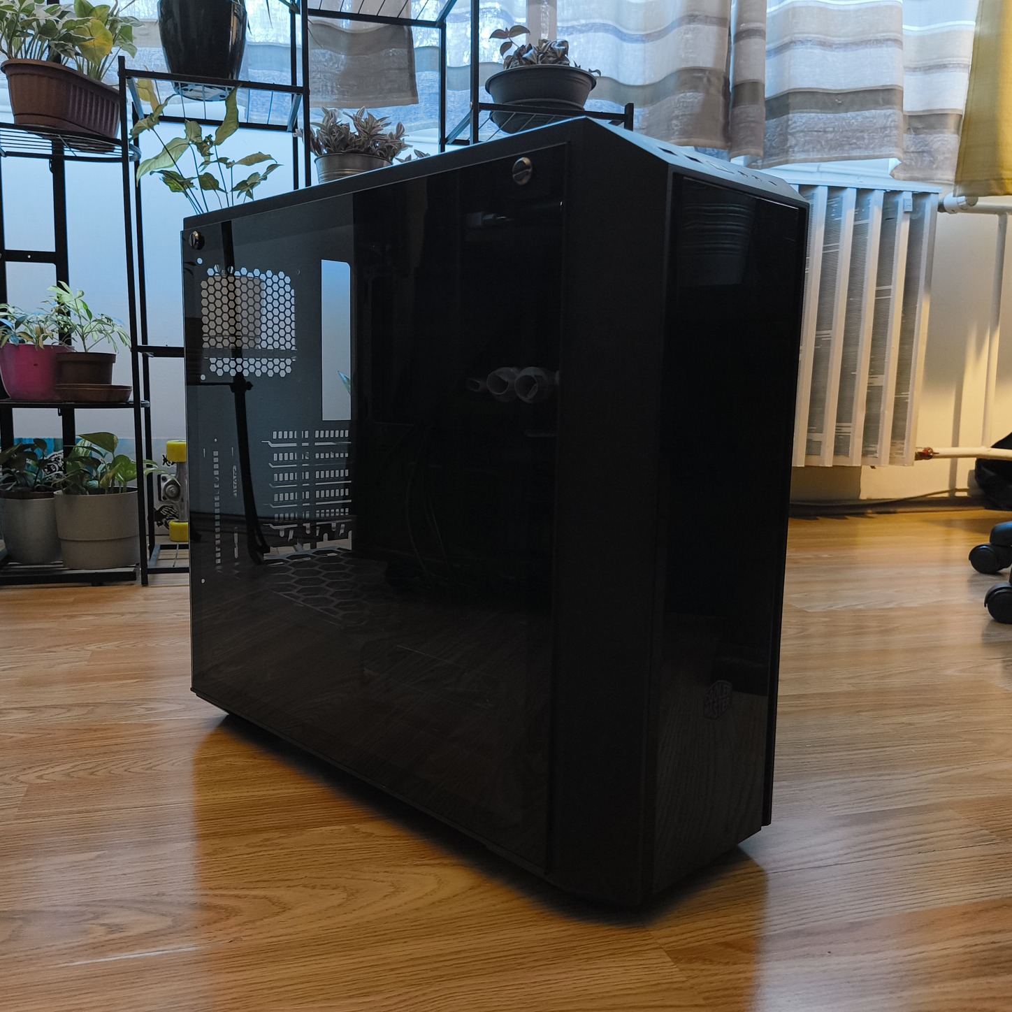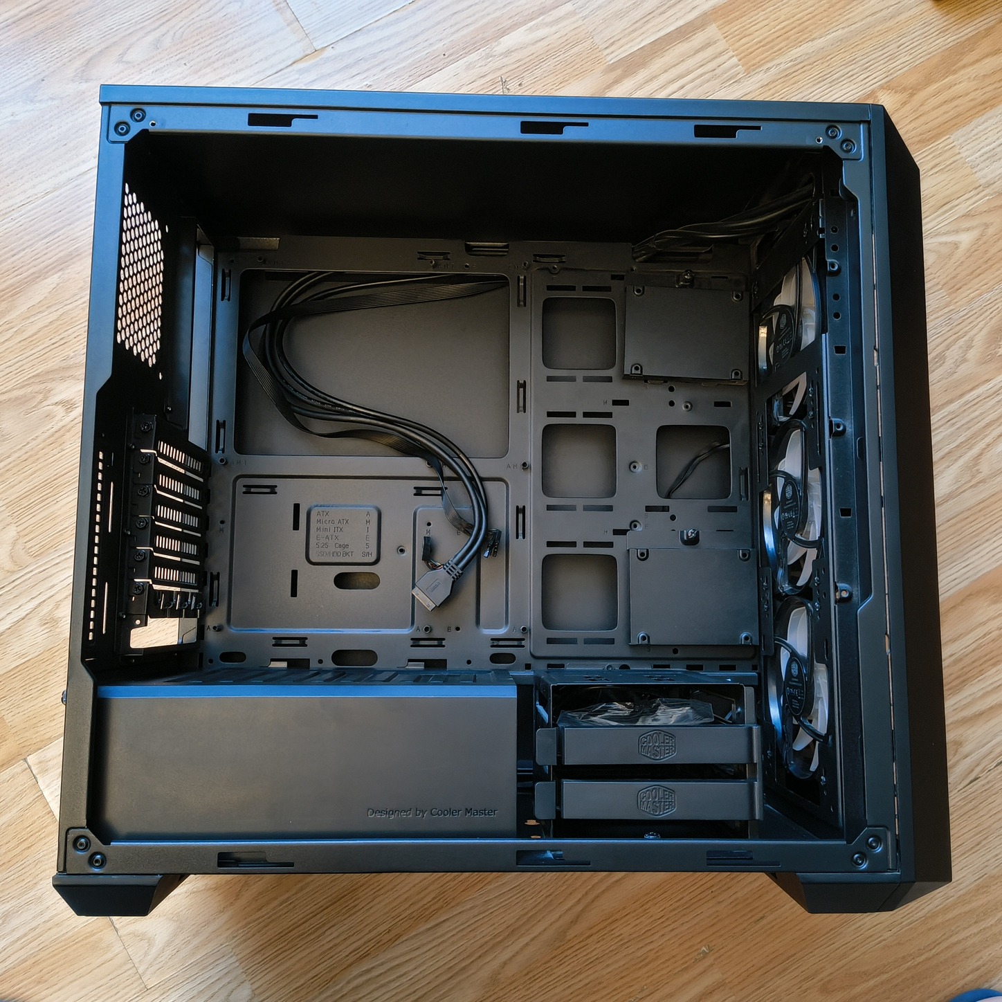 Három darab gyári RGB ventilátorával és szerelékével adom, adok hozzá ajándékba egy nem a legjobb minőségű de jól működő 3D nyomtatott airflow előlapot. Egy hátsó pcie takaró nincs meg, de ha az ember gpu-t is tervez a gépbe rakni, akkor nem fog hiányozni.
