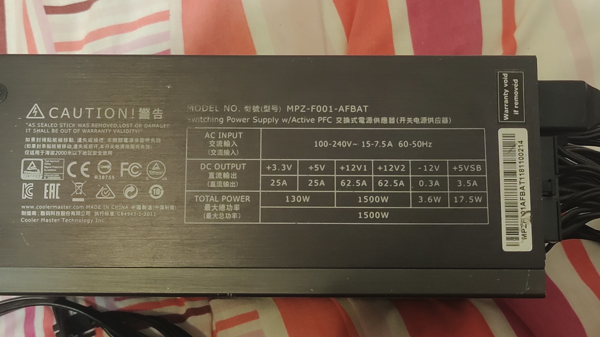 Cooler Master Masterwatt maker 1500w titanium (mpz-f001-afbat) moduláris táp