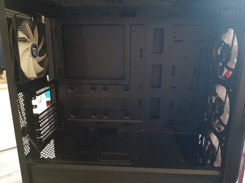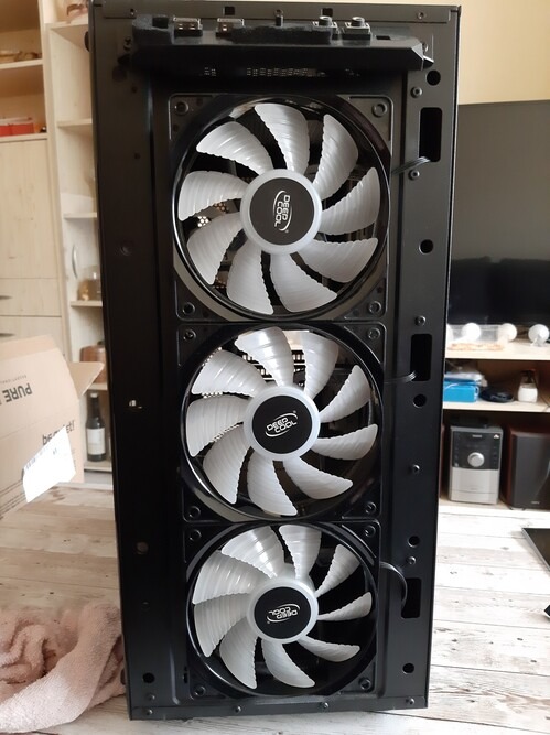 Elől 3db DeepCool RF120 piros ledes, hátul 120mm-es Arctic venti található.