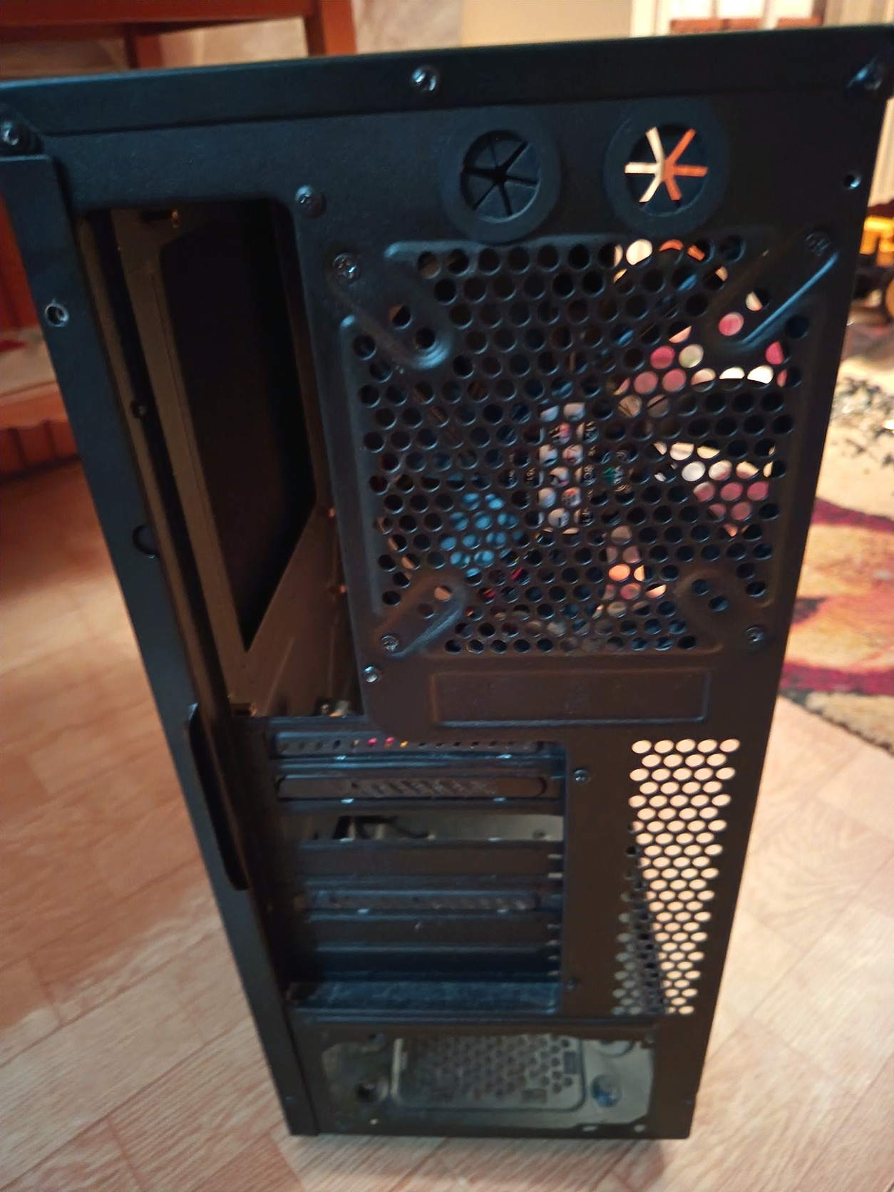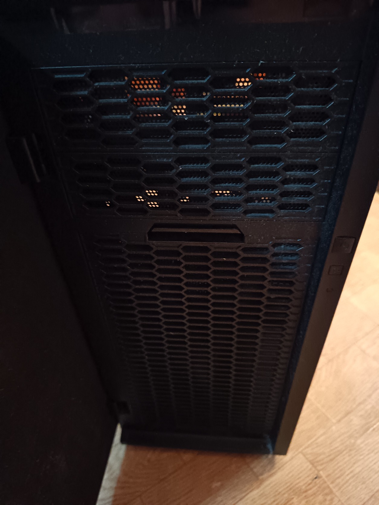 Eladó a képeken látható szép állapotban lévő számítógép ház. 3db gyári ventilátor van beépítve. Csendes, hangszigetelt alsó tápos, ATX midi ház.