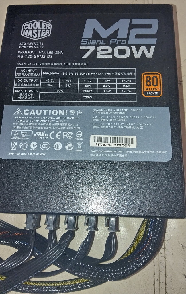 Pontos név: Cooler Master Silent Pro M2Pontos típus: RS-720-SPM2-D3Teljesítmény: 720W