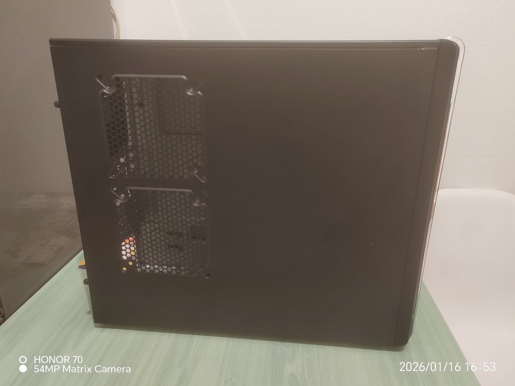 Eladó fent megnevezett atx gépházam szép megkímélt állapotban , alsó tápos kivitel , 2*120mm ventivel van szerelve egy elől és egy hátul ami világít , személyesen elsősorban budapest 3-adik kerületében megtekinthető , ahol áttudom még adni személyesen az 1-es villamos vonalán , csomagküldés van de csak postával a mérete miatt ami a vevőt terheli , bármilyen kérdésed van keress bátran!