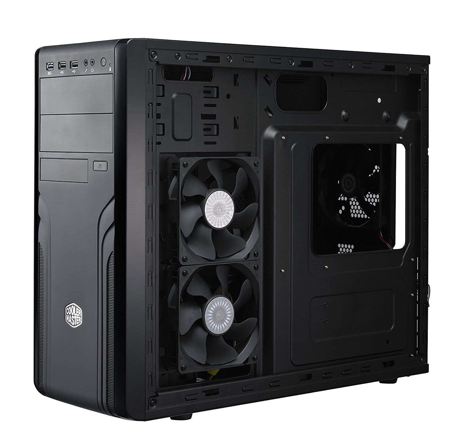 Fekete, karcmentes, és igen érdekes elrendezésű! A képeken is látható, hogy mindkét oldal használható a hűtőrendszer kiépítésére. A más házaknál nem beépíthető oldalra itt két ventilátor, vagy akár egy 24-es radiátor is telepíthető!