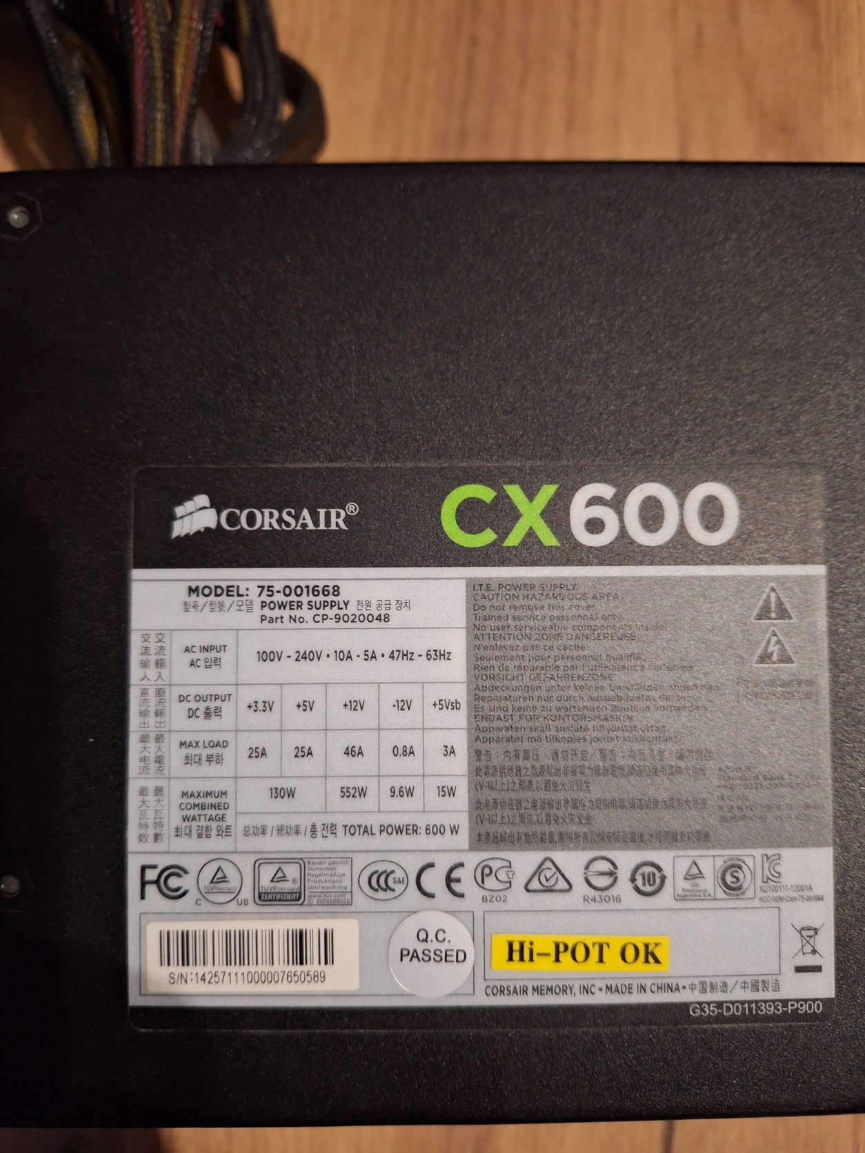 Corsair CX600 Táp