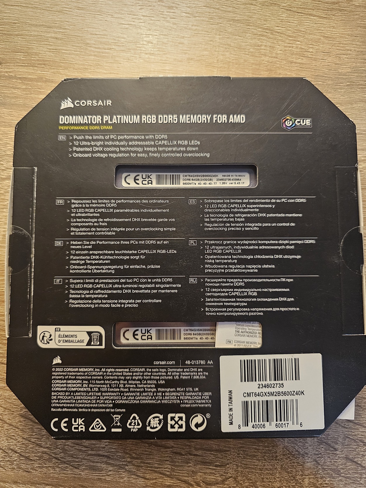 Corsair Dominator Platinum RGB 64GB 2x32 Hynix-M die 6000MHz CL28 DDR5