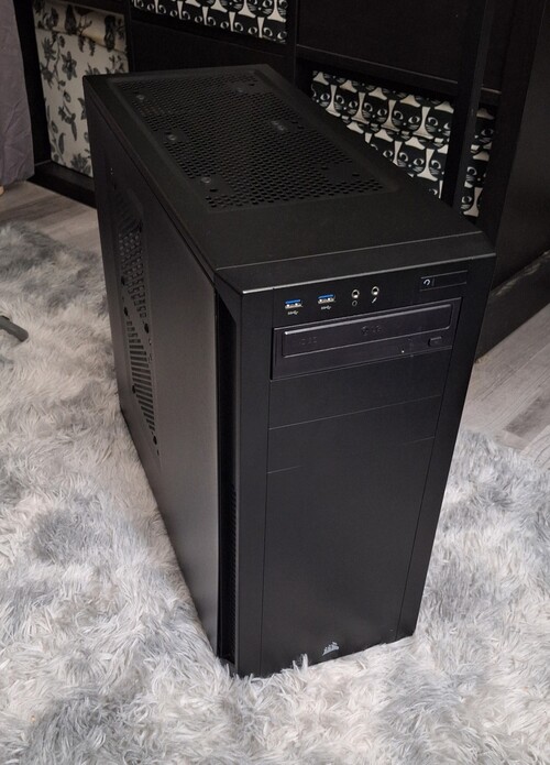 Szép állapotú nagyméretű ház, megfelelően széles a nagyobb méretű hűtők befogadásához. Személyes átvétel - leginkább.. 2db 12cm Corsair ventilátor, és egy DVD író olvasó van benne.