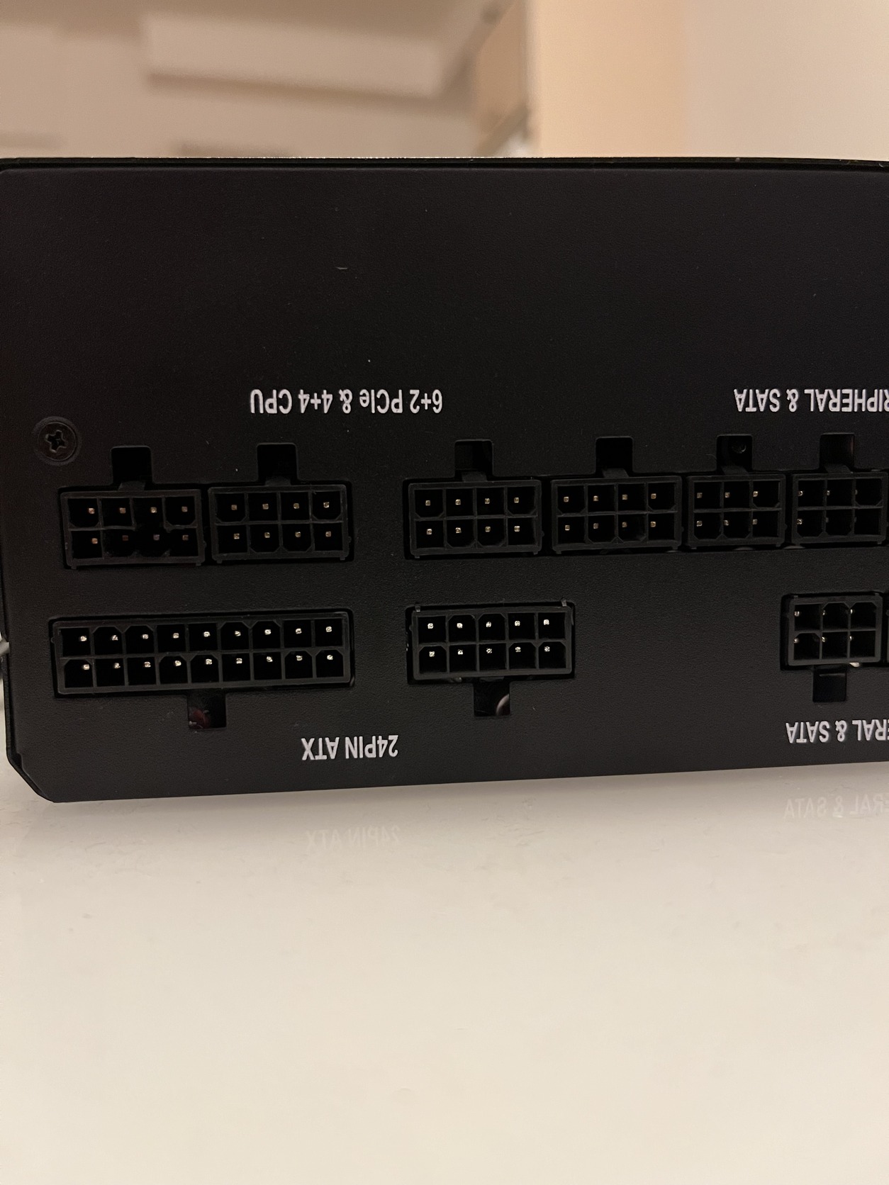 Viszont fontos! Mikor szétszedtem a tápot, a kábel elöregedett műanyag csatija beletört a négy közül az egyik 6+2 // 4+4 portba. A port ugyanúgy működik, de kikapartam belőle a műanyag törmeléket. A másik 3 port sértetlen. A kábelt természetesen kicseréltem (másik Corsairre) és teszteltem.