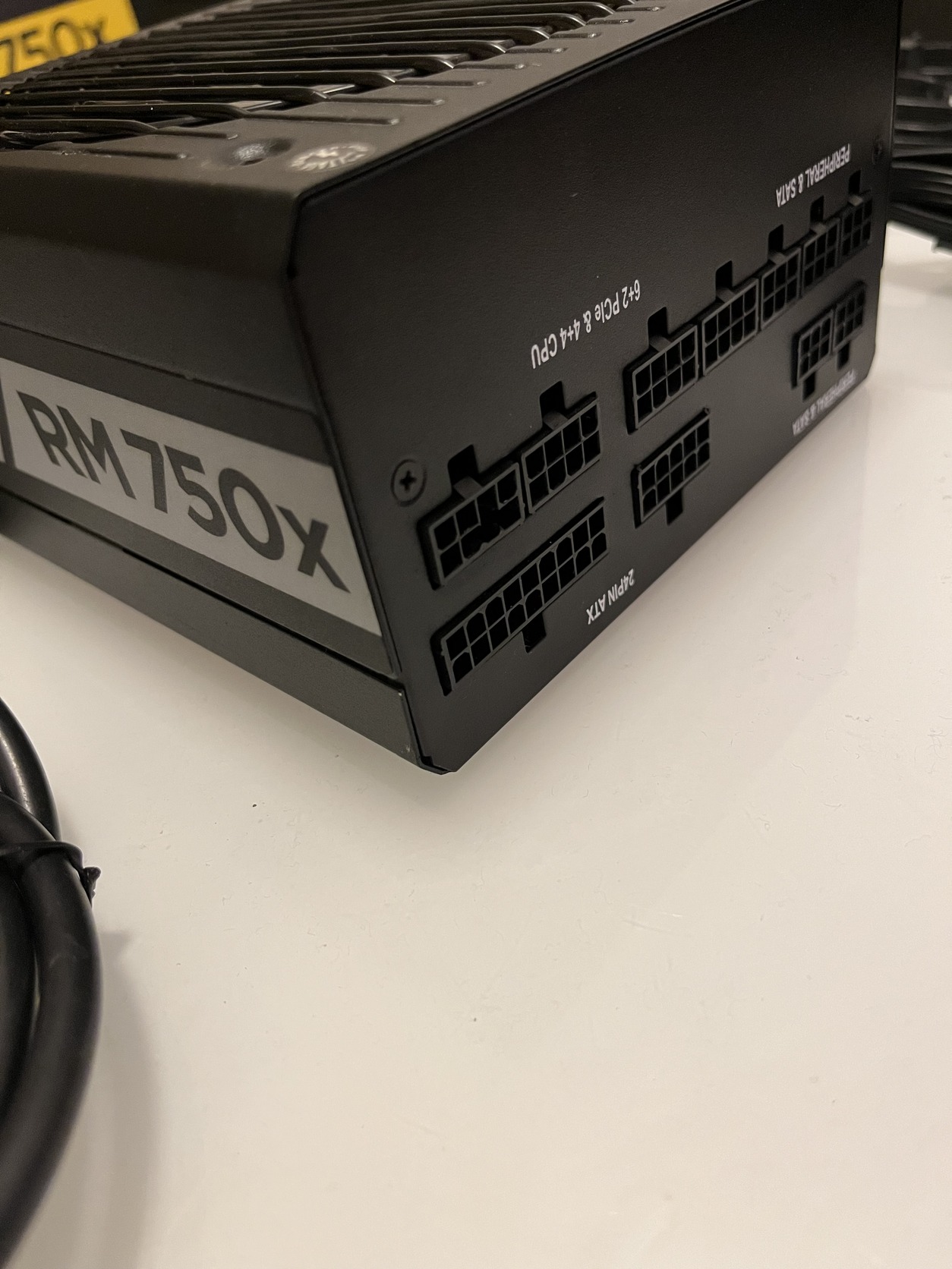 A négy darab 6+2 // 4+4 port egyikébe beletört a kábel elöregedett műanyag csatlakozója. Kikapartam belőle, és egy új Corsair kébellel ugyanúgy működik.