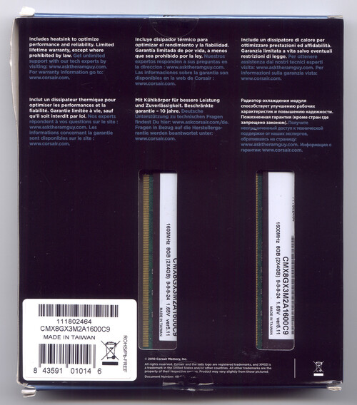 Corsair XMS3 8GB (2x4GB) DDR3 1600MHz CMX8GX3M2A1600C9 9-9-9-24 1.65V memória kit
