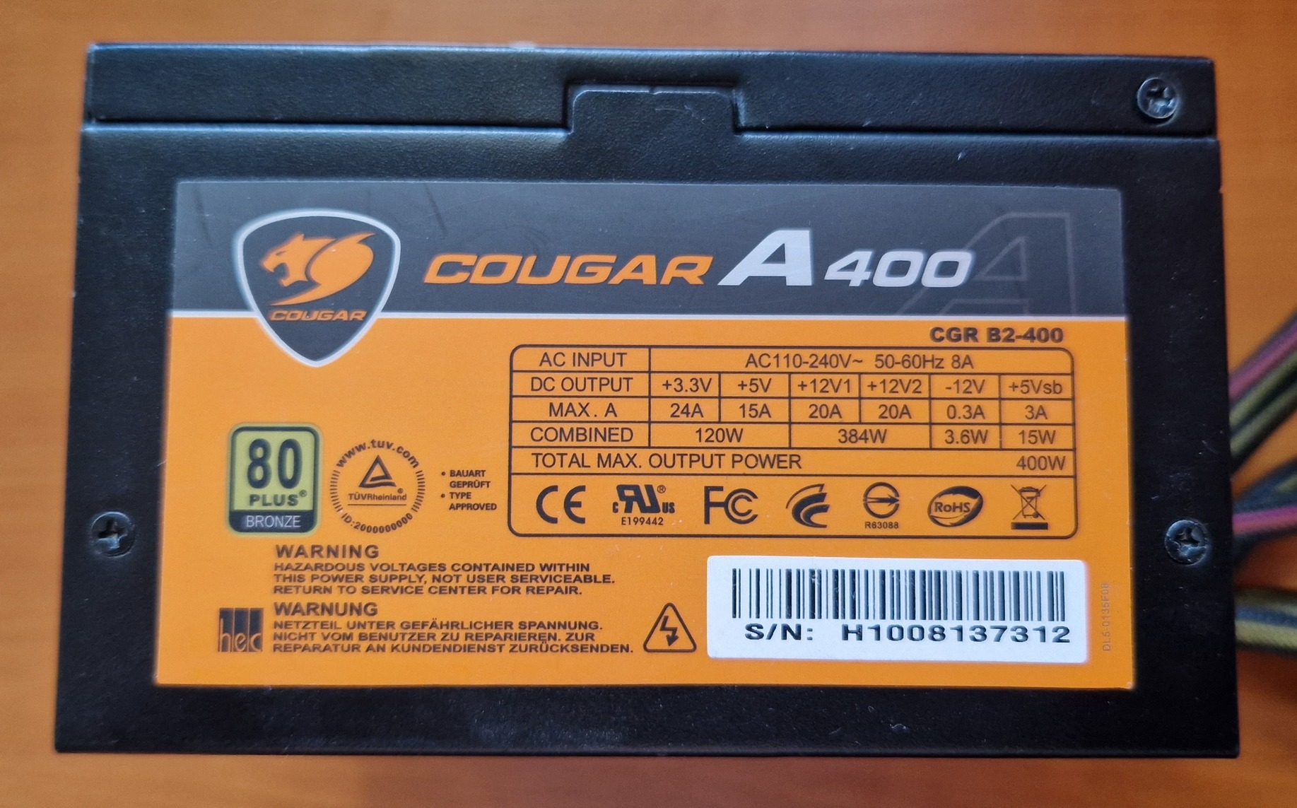 Eladó a képeken látható, hibátlanul működő Cougar A400 típusú 400W-os számítógép tápegység.