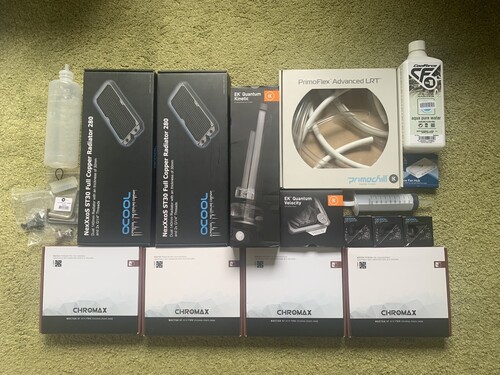 CPU Block, Pumpa + tartály kombó, Fittingek, Radiátorok, Ventilátorok, Venti Hub, Gépház, stb.