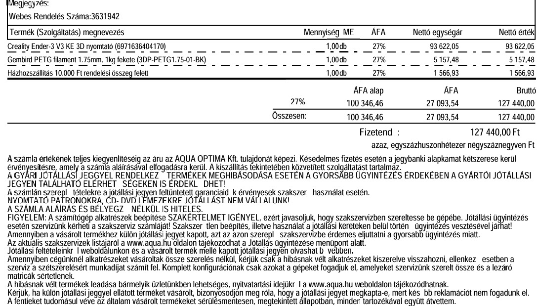 Eladó még garanciális 3D nyomtató. Számla a képek között. Nagyon jó nyomtató, csak azért adom el mert kaptam komolyabbat.