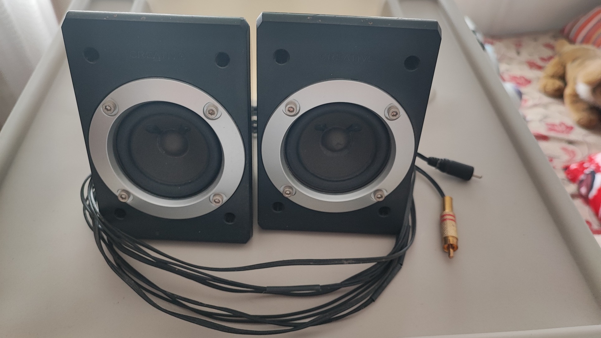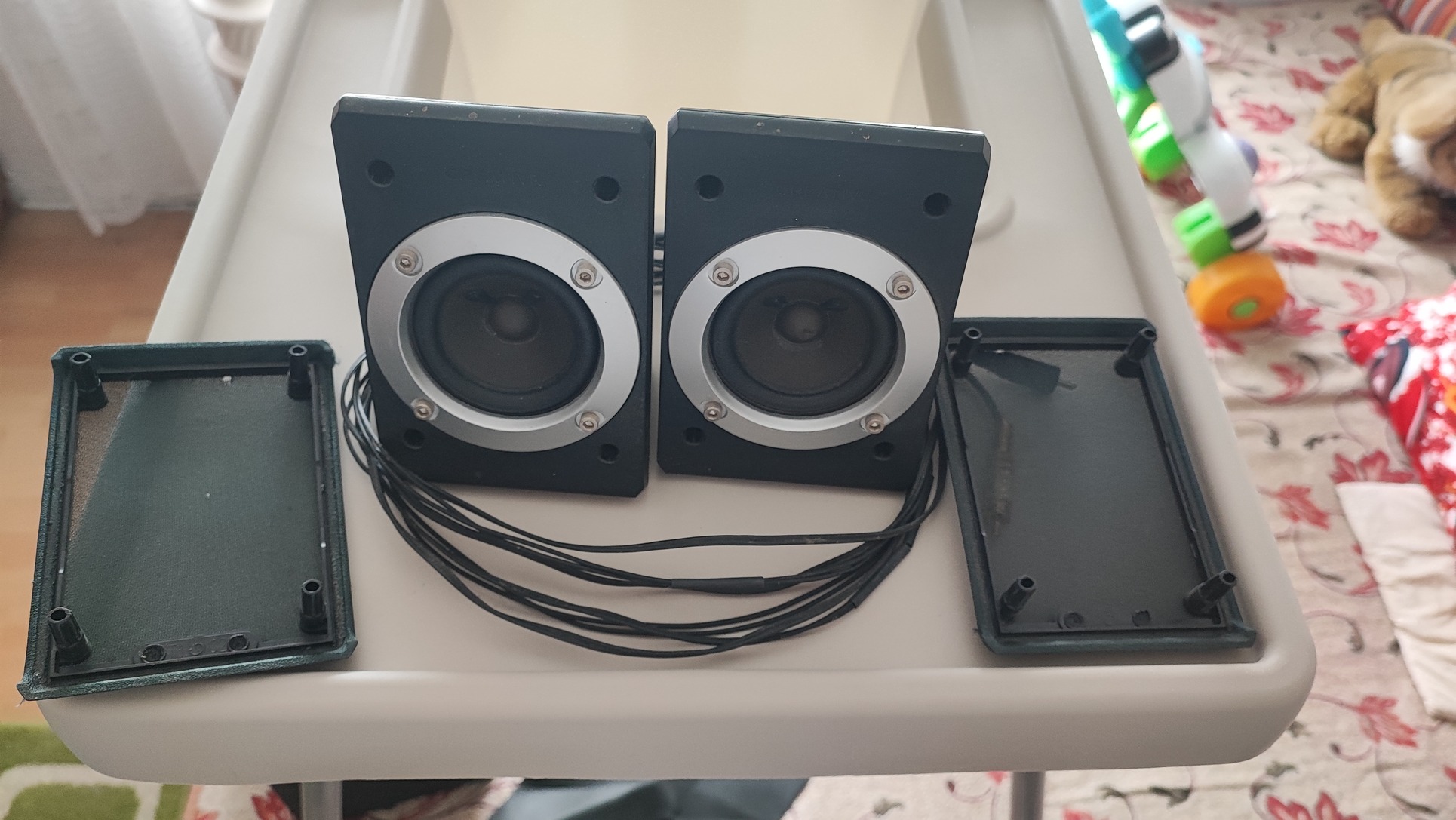 Eladó a fotókon látható állapotban lévő 2.1 hangfal szett.