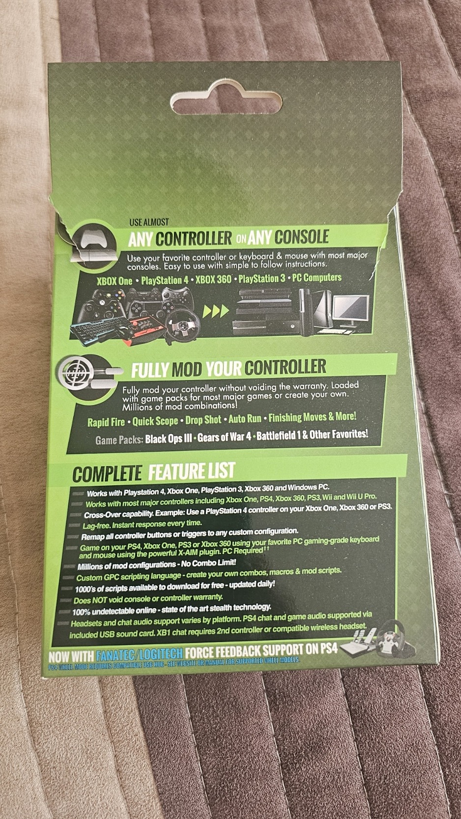 - Keresztplatformos működés. Pl: Használj PlayStation 4 vagy Wii controller-t az Xbox One, Xbox 360 vagy PS3 konzolon.