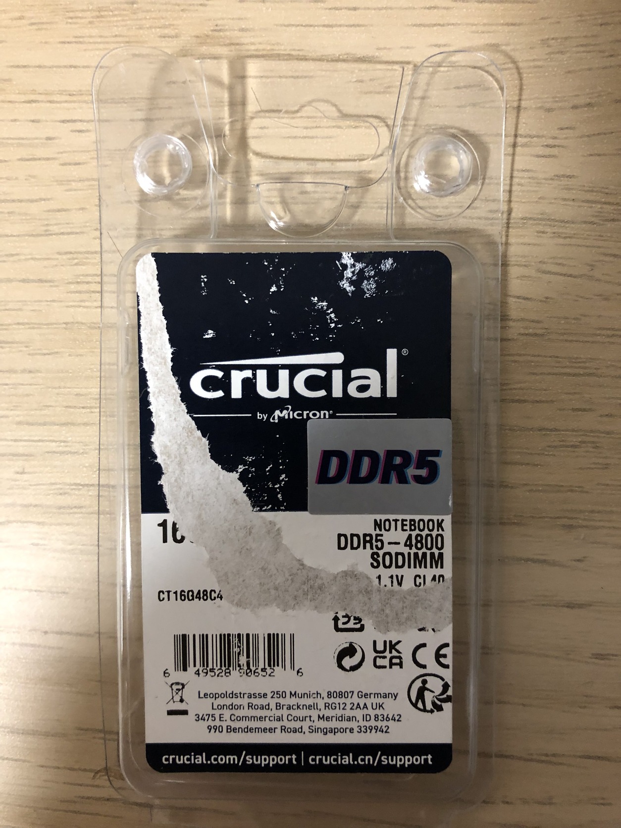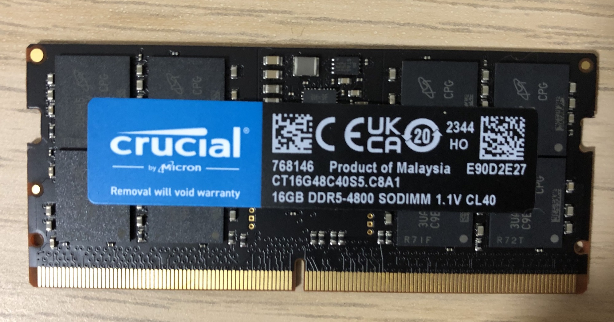Crucial 1x16GB DDR5 4800MHz CL40 CT16G48C40S5