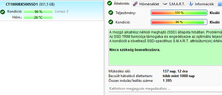 Tökéletesen működik. CT1000BX500SSD1