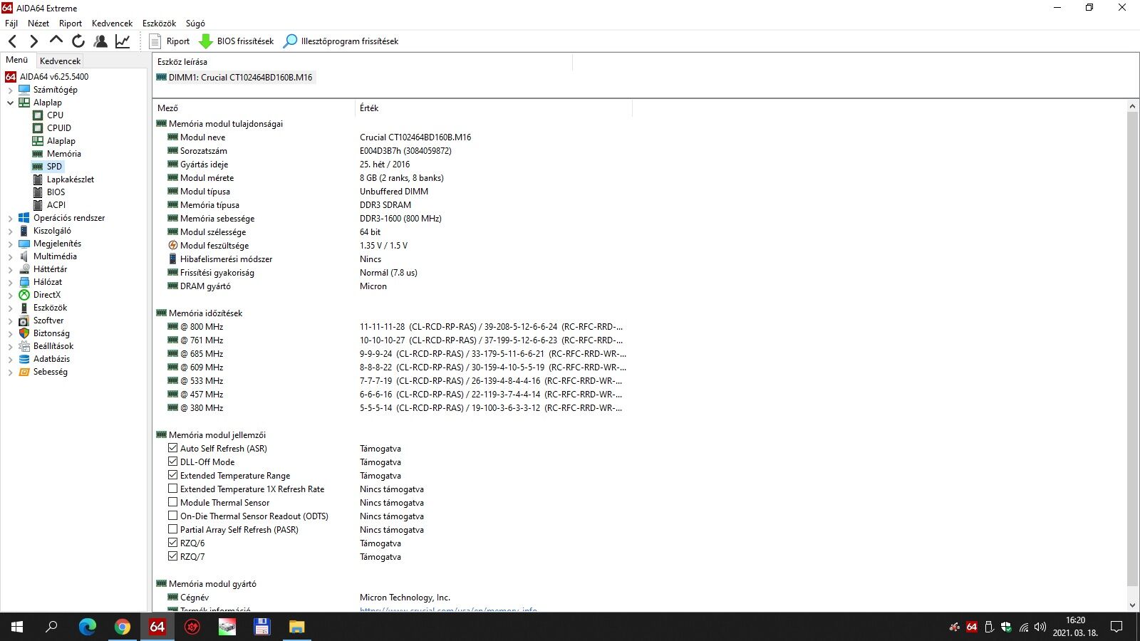 Memória sebessége DDR3-1600 (800 MHz)