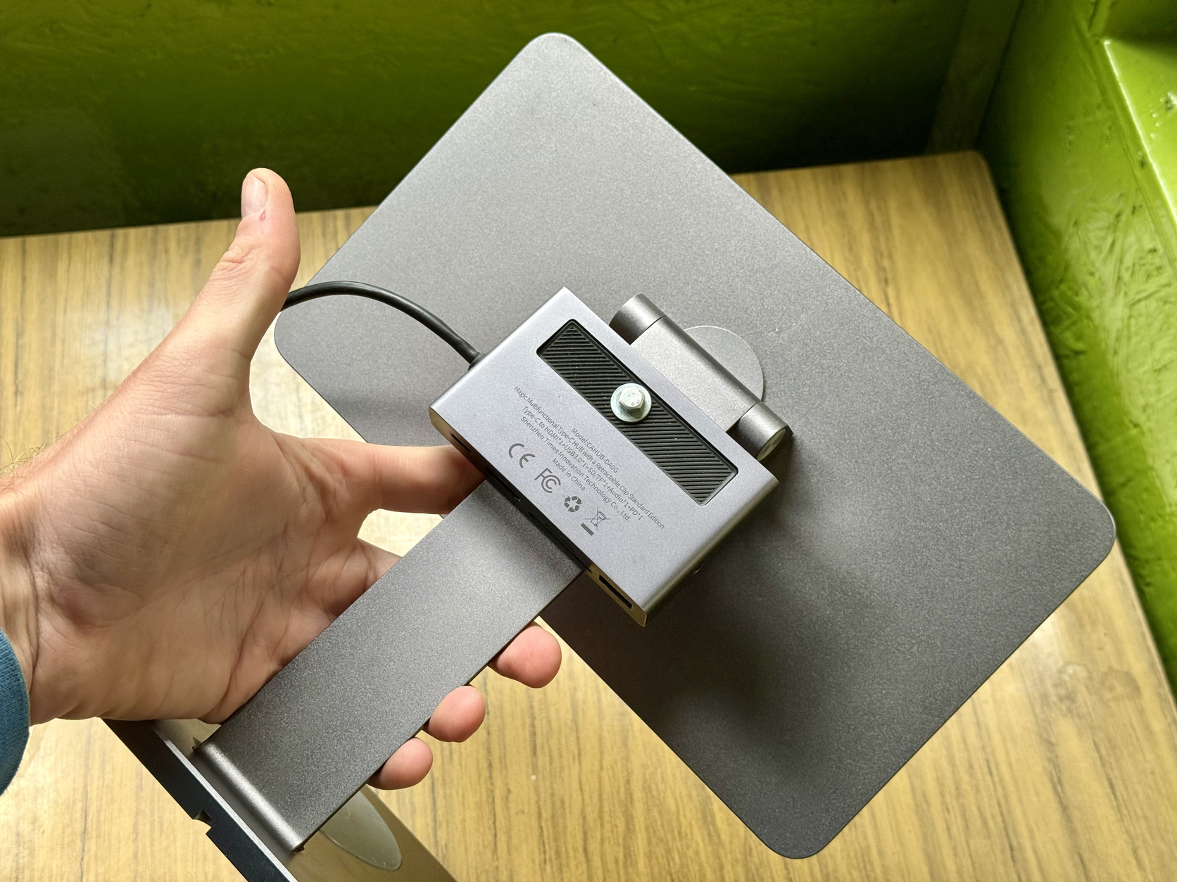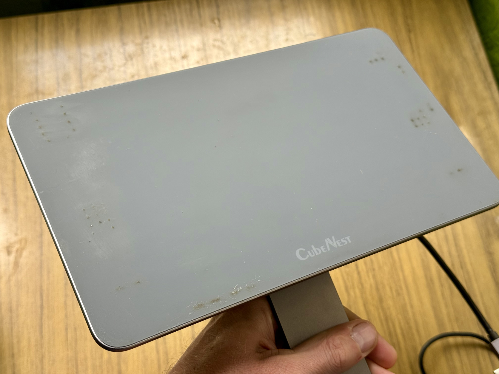 -A hátulján van egy lyuk fúrva, oda volt csavarozva a dock ami nem eladó