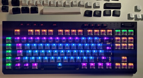 Lényegében van hozzá az eredetin felül egy majdnem teljes szett fehér, magyar keycap szett: ezek vastagabbak (1 mm) a gyárinál.