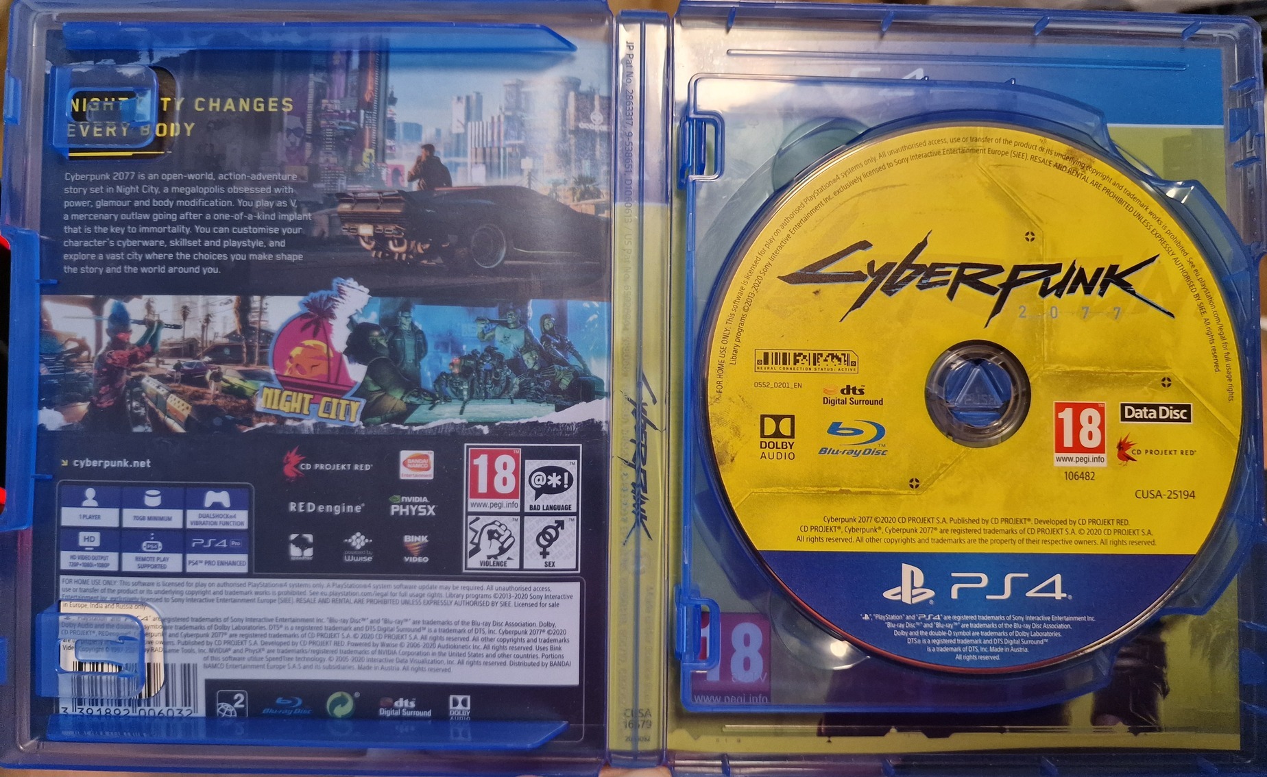 PS5-n automatikusan frissül PS5 verzióra. Phantom Liberty DLC-t nem tartalmazza.