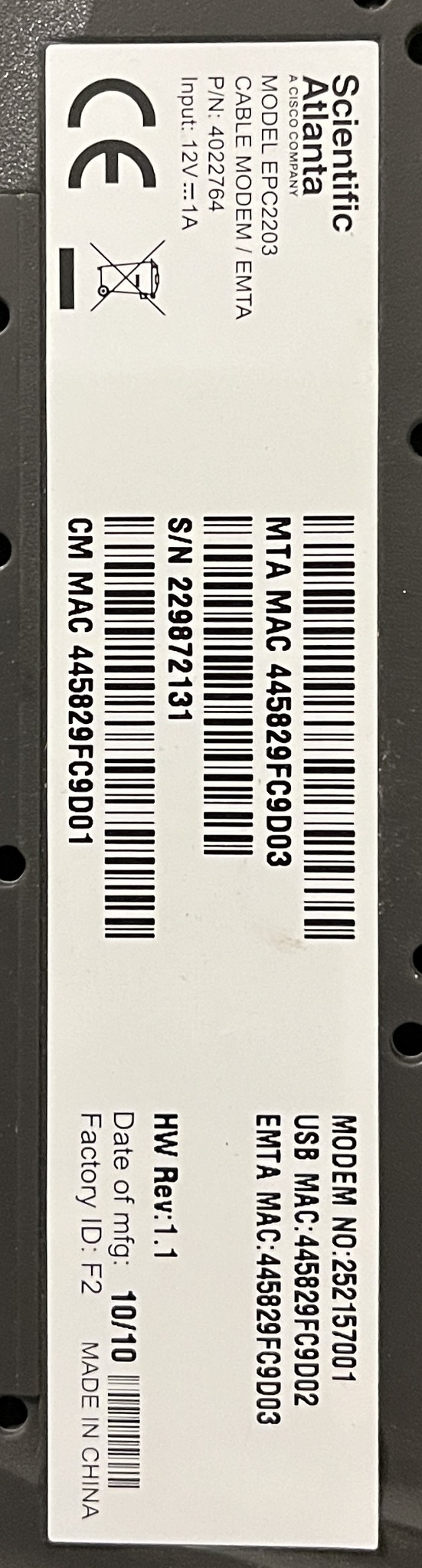 Kábelmodem EPC2203