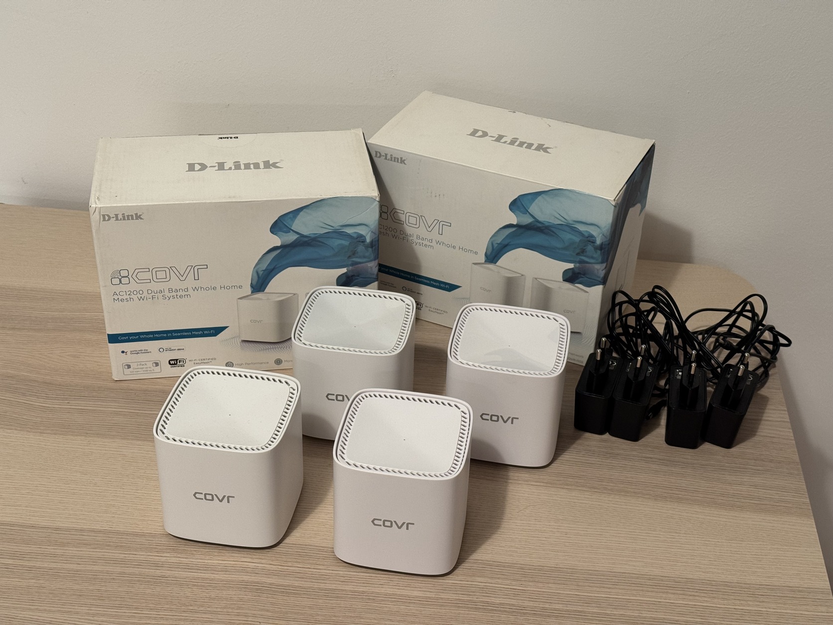 WiFi6 rendszerre váltás miatt eladóvá vált két darab D‑Link COVR‑1102 mesh szett, összesen 4 node.