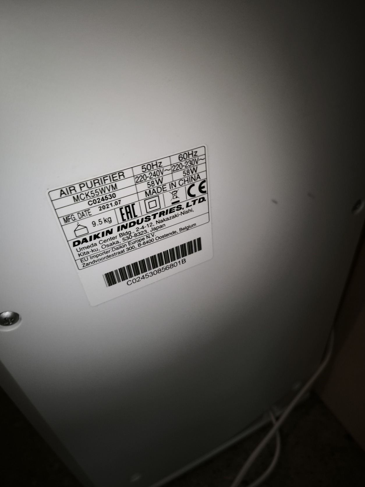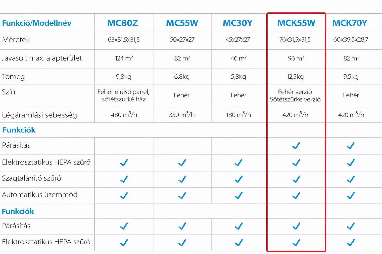 Daikin mck55w légtisztító (párásító funkcióval)