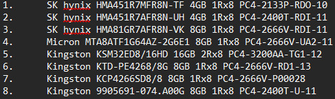 8. Kingston 9905691-074.A00G 8GB 1Rx8 PC4-2400T-U-11 (20 000 Ft)