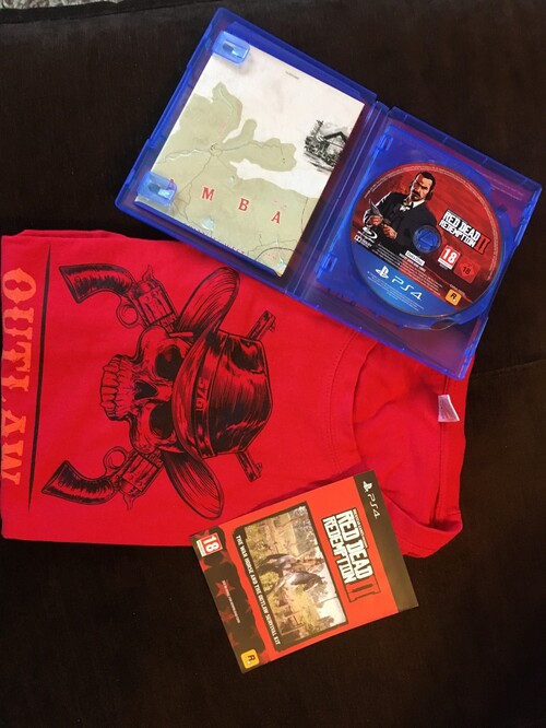 - Red Dead Redemption 2 (outlaw survival kit kód, térkép, 576 előrendelői L-es póló (nem volt hordva)) - 7500