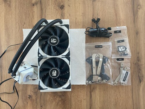 Mint a képeken látható, minden gyári tartozéka, doboza jár a vásárlás esetén. Nekem egy Ryzen 5 3600-at tartott hűvösen, minden probléma nélkül. Asus Aura Sync-kel szépen tette a dolgát, de a többi gyártó megoldását is támogatja. A pumpa rézlapján kisebb karcolások láthatóak, a hűtést nem befolyásolják, már én is így vettem.