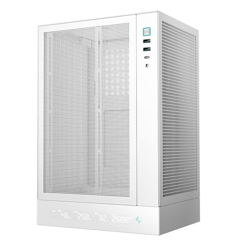 Eladó a letisztult, fehér színű Deepcool CH170 Digital számítógépházam a beépített digitális kijelzővel.