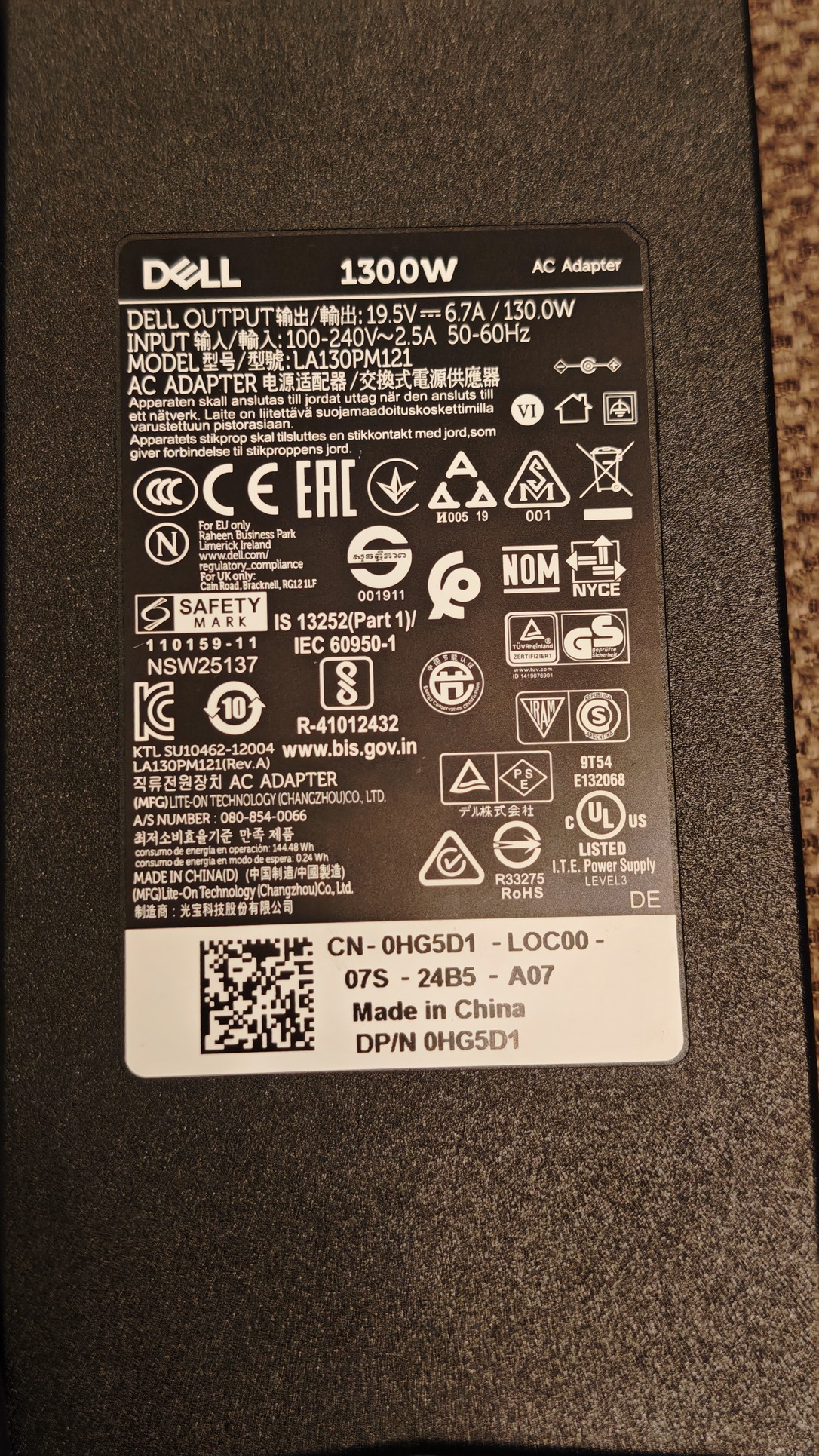 Eladó a képeken látható kifogástalan Dell 130w-os laptoptöltő.