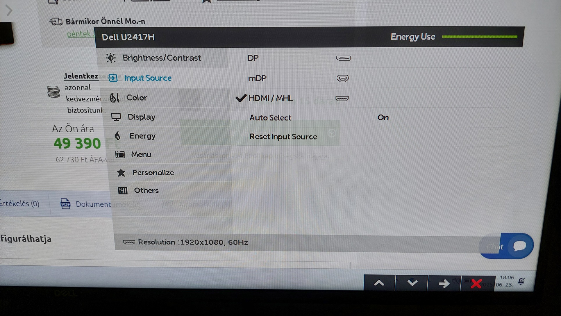 Ez már egy modernebb megjelenésű keret nélküli 24" LED IPS paneles monitor.