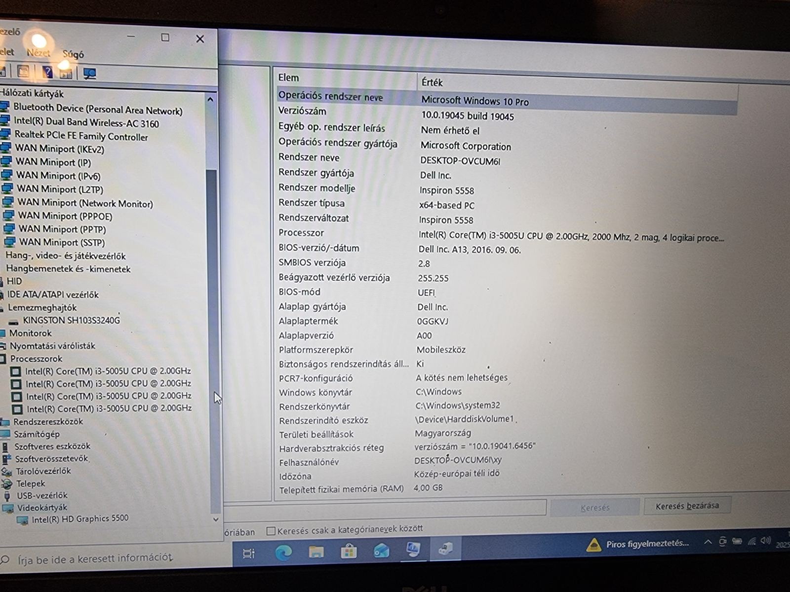 - Intel i3-5005u processzor