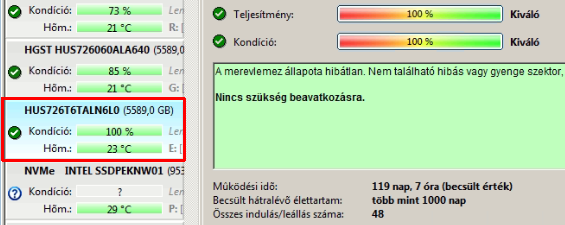 Állapot: 100/100 - ~120 nap működés