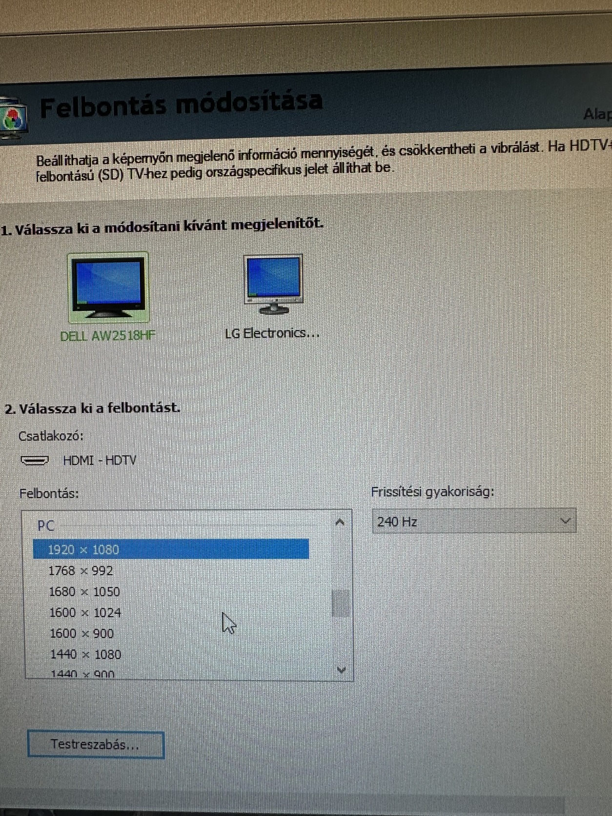 Képfrissítési frekvencia:v 240 Hz