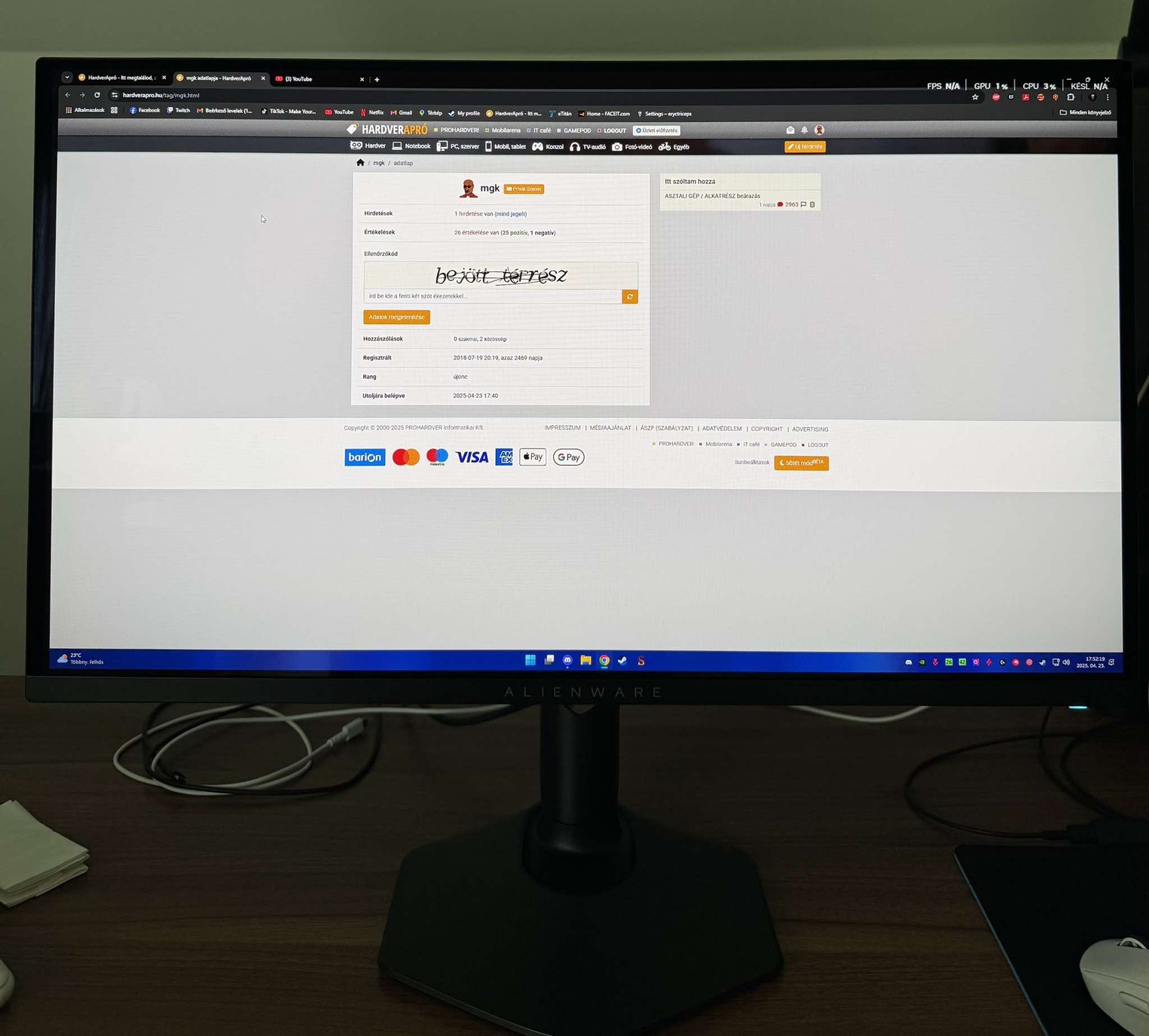 Eladó Dell Alienware AW2725DF monitor váltás miatt.