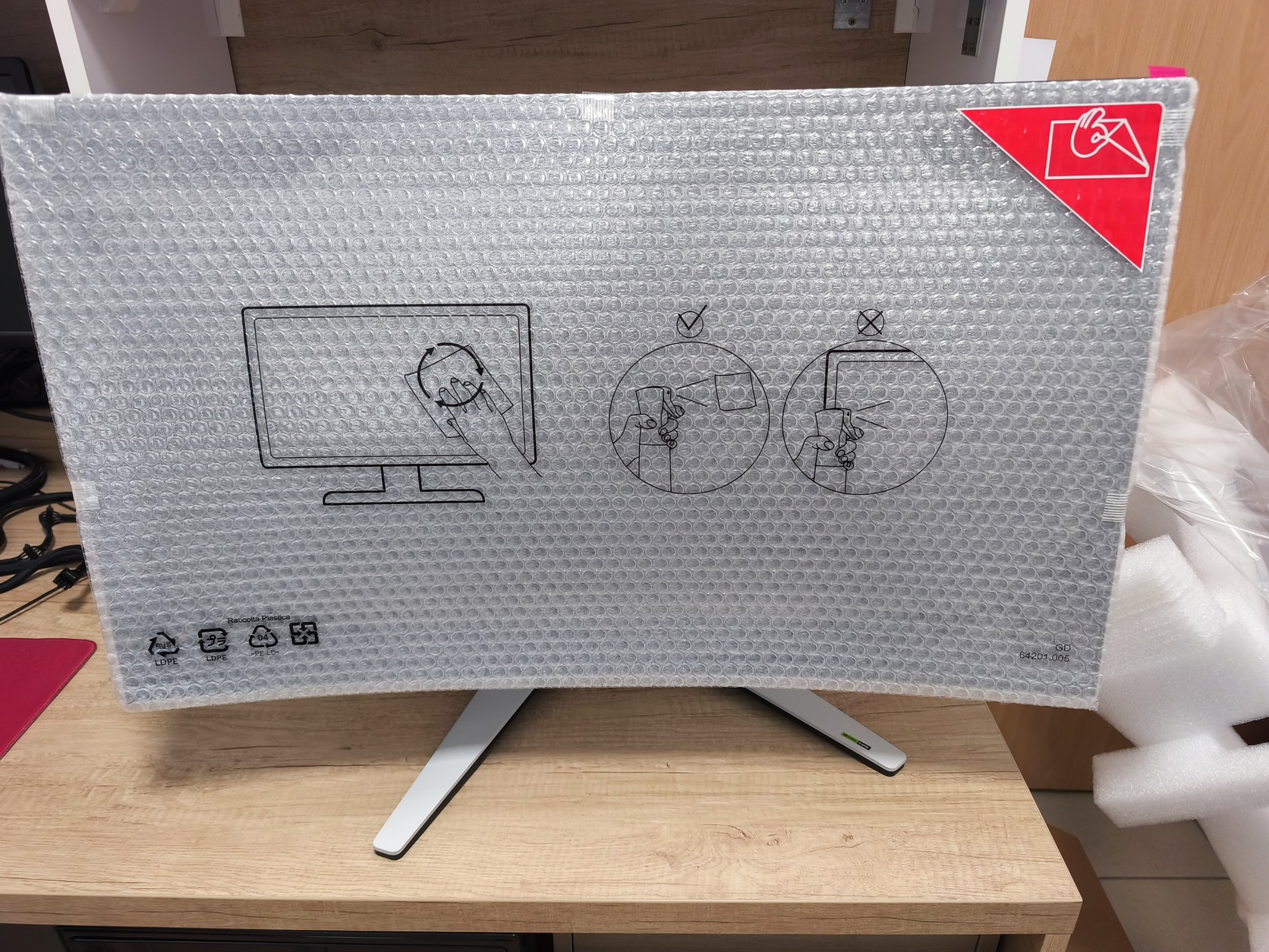 Kiszerelés: Gyári sima barna papírdobozba, kábelek nélkül, csak maga a monitor, talpával, tápkábelével.
