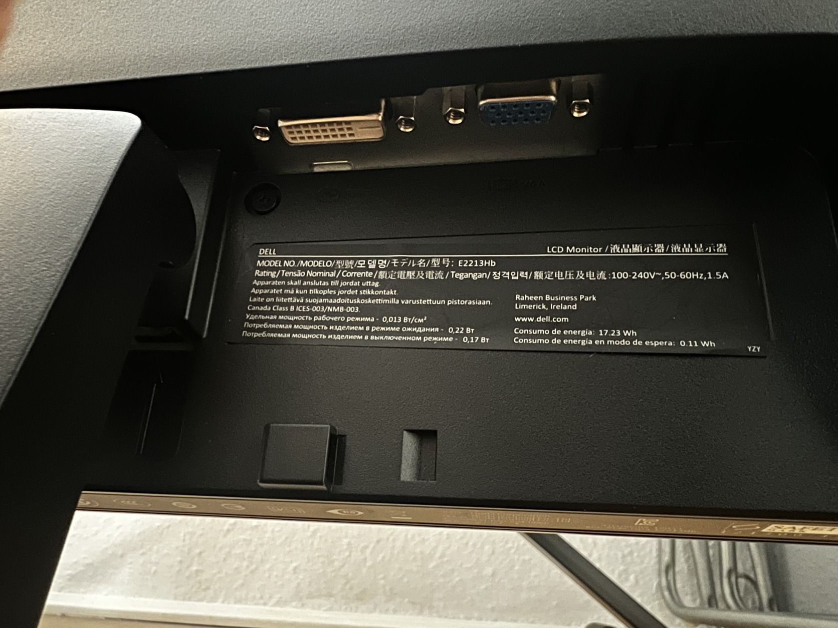 Dell E2313H monitor kábelekkel