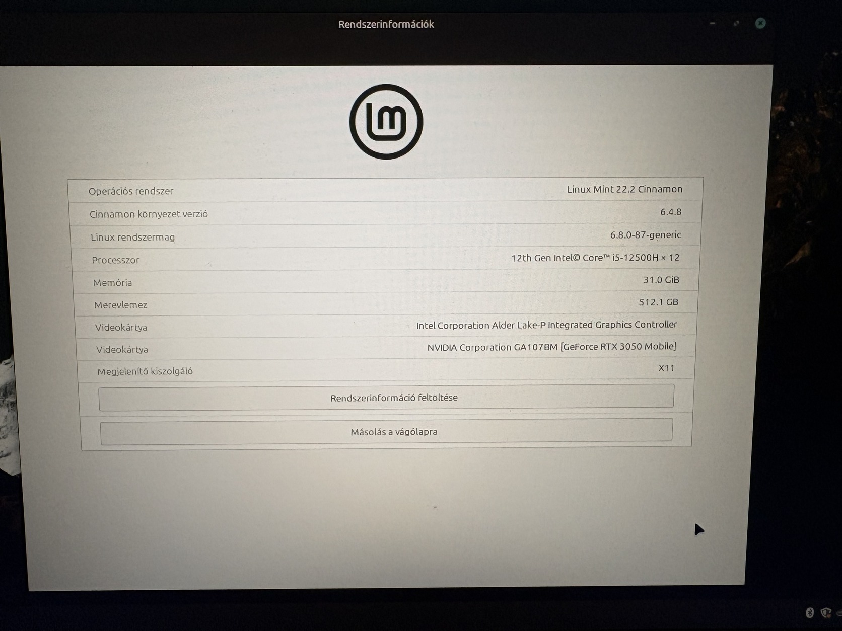 Operációs rendszer - Linux Mint 22.2 Zara (frissen újratelepített)
