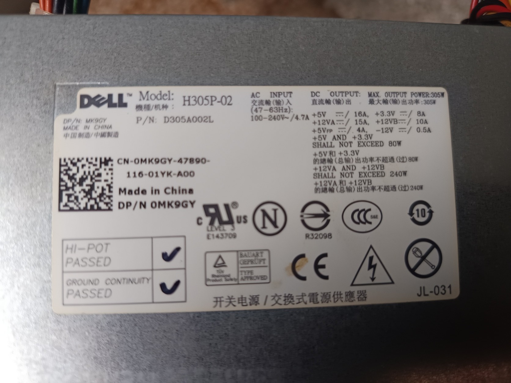 Eladó 1db Dell H305P-02 for Optiplex 960 980 780 MT - 305W