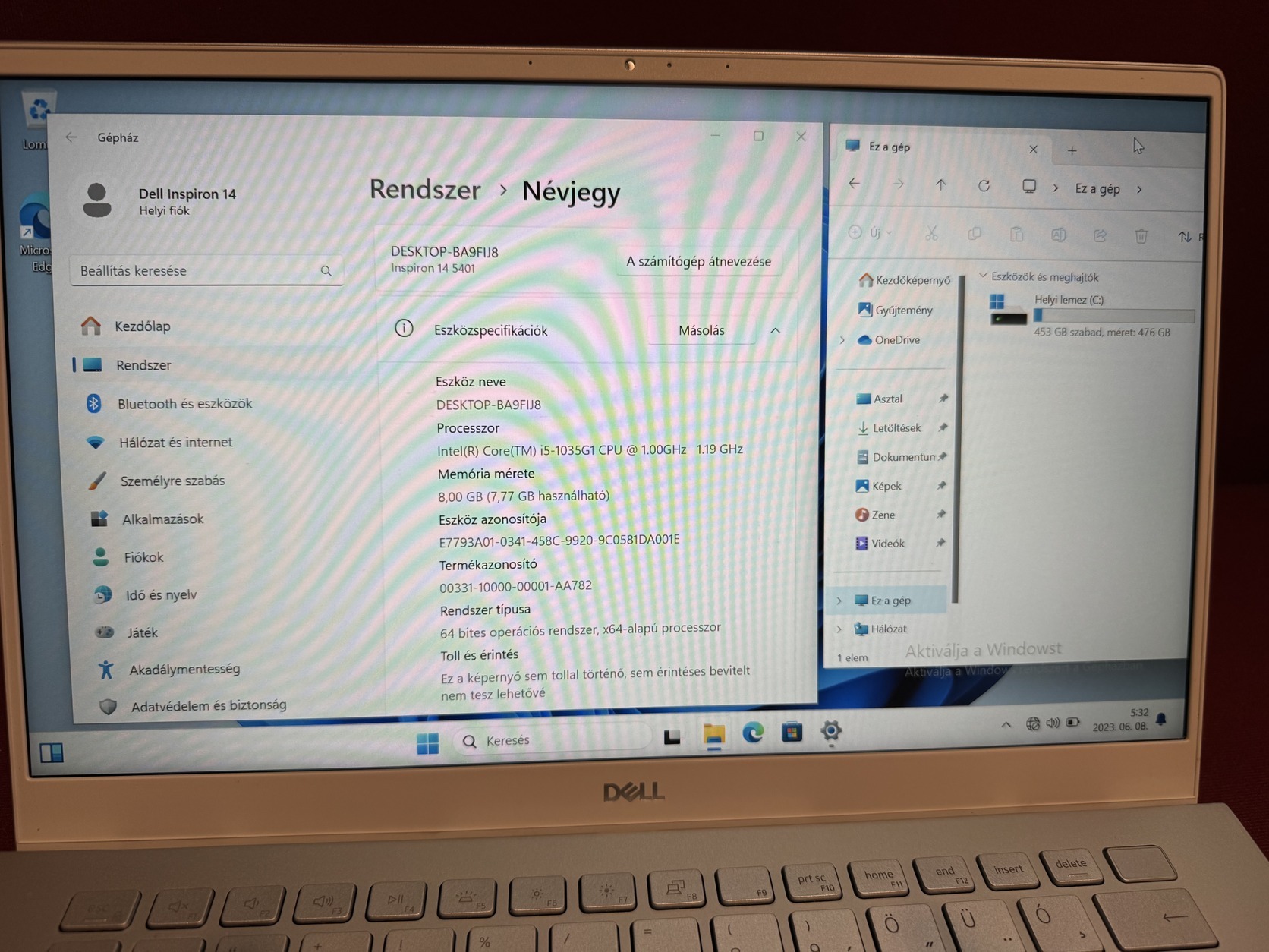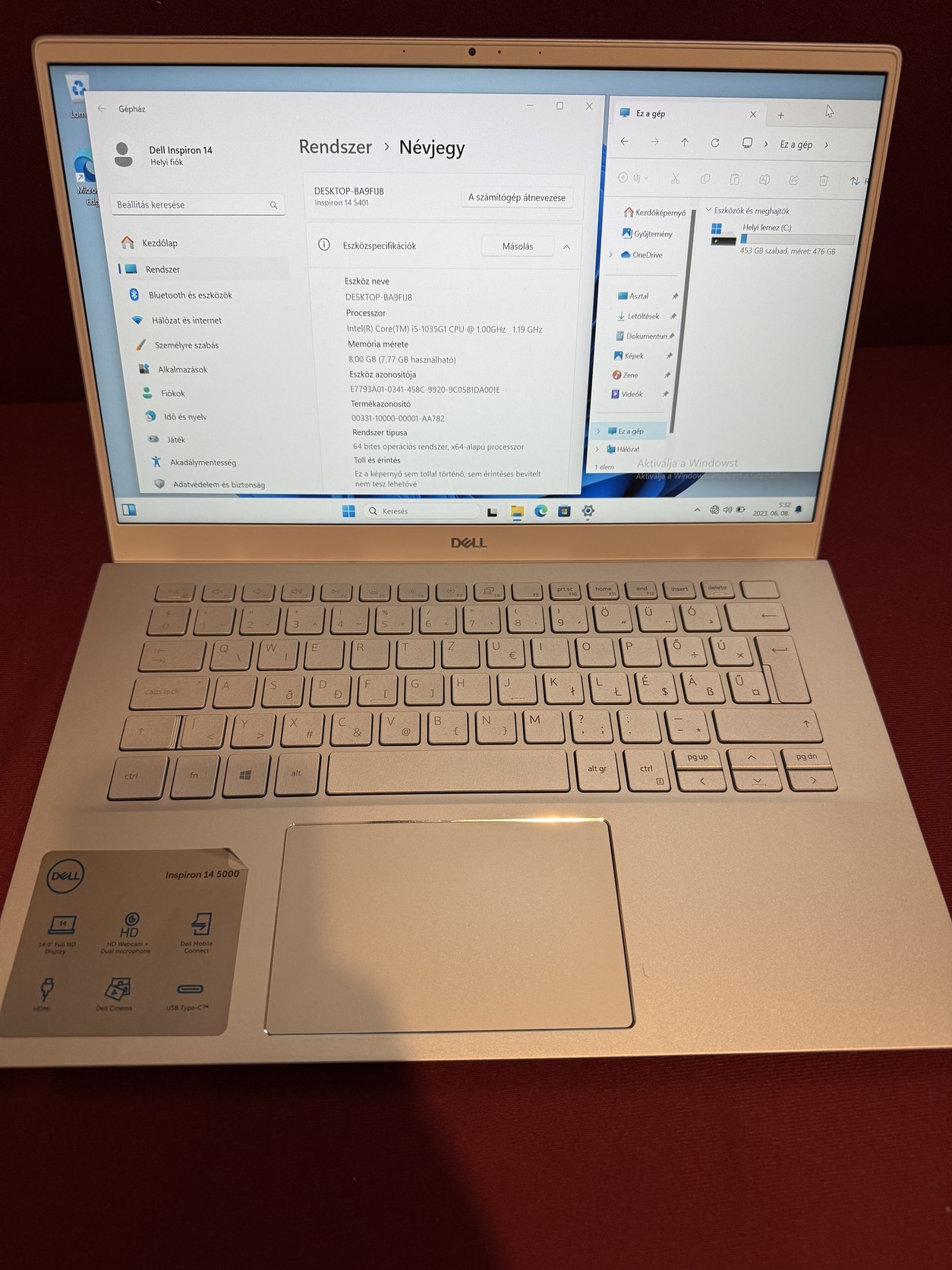 Dell Inspiron 14 5401 / i5-1035G1 / 8gb ddr4 / 500gb nvme ssd / jó akku/ magyar bill. / töltő