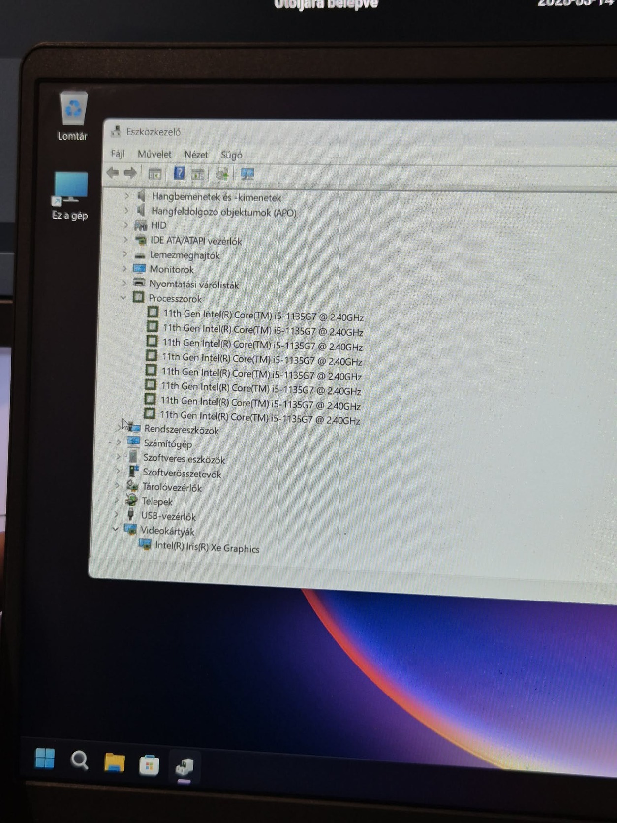 i5 1135G7 processzorral van szerelve. kijelző, billentyü és touch pad hibátlan. Hangszórói hangosak, akksija sokat bír! Magyar kiosztású billentyüzet.