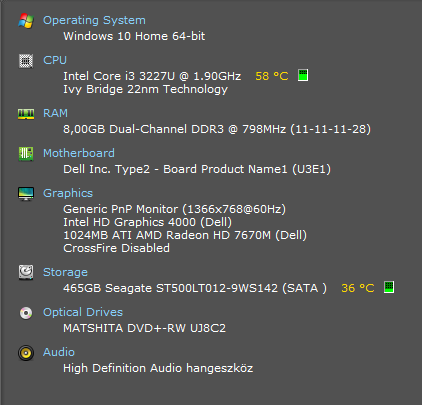 - CPU: i3 3227U (Ivy Bridge) 1.29GHz