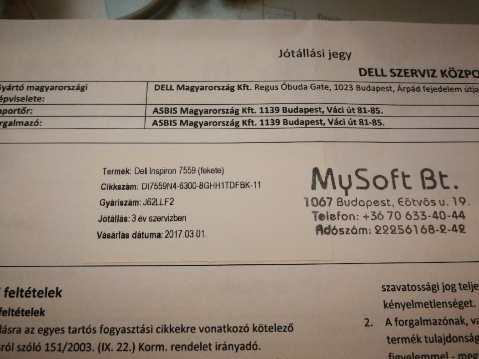 Garancia: még 2 év (2020.03.01-ig) Dell szervizben.