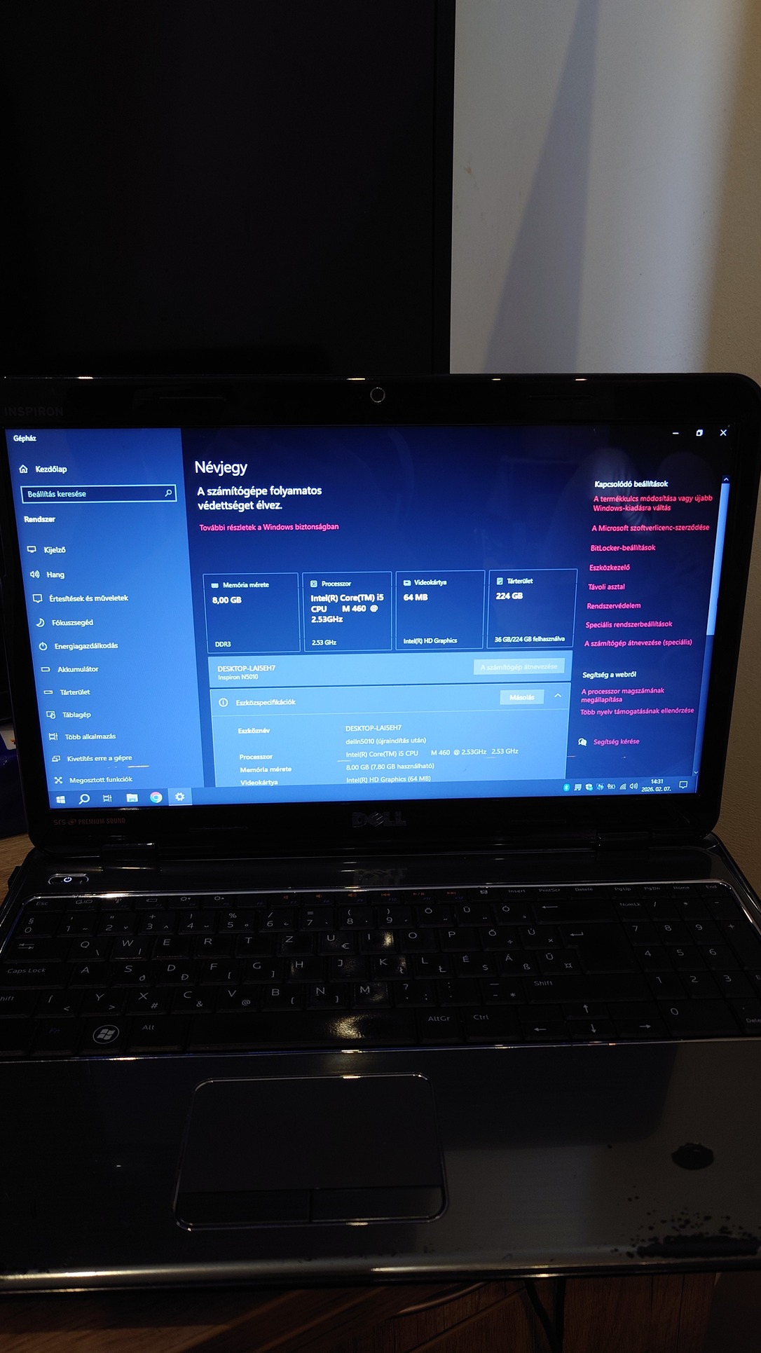 Újonnan telepített, aktivált Windows 10 Pro-val, töltőjével együtt eladó régebbi laptopom.