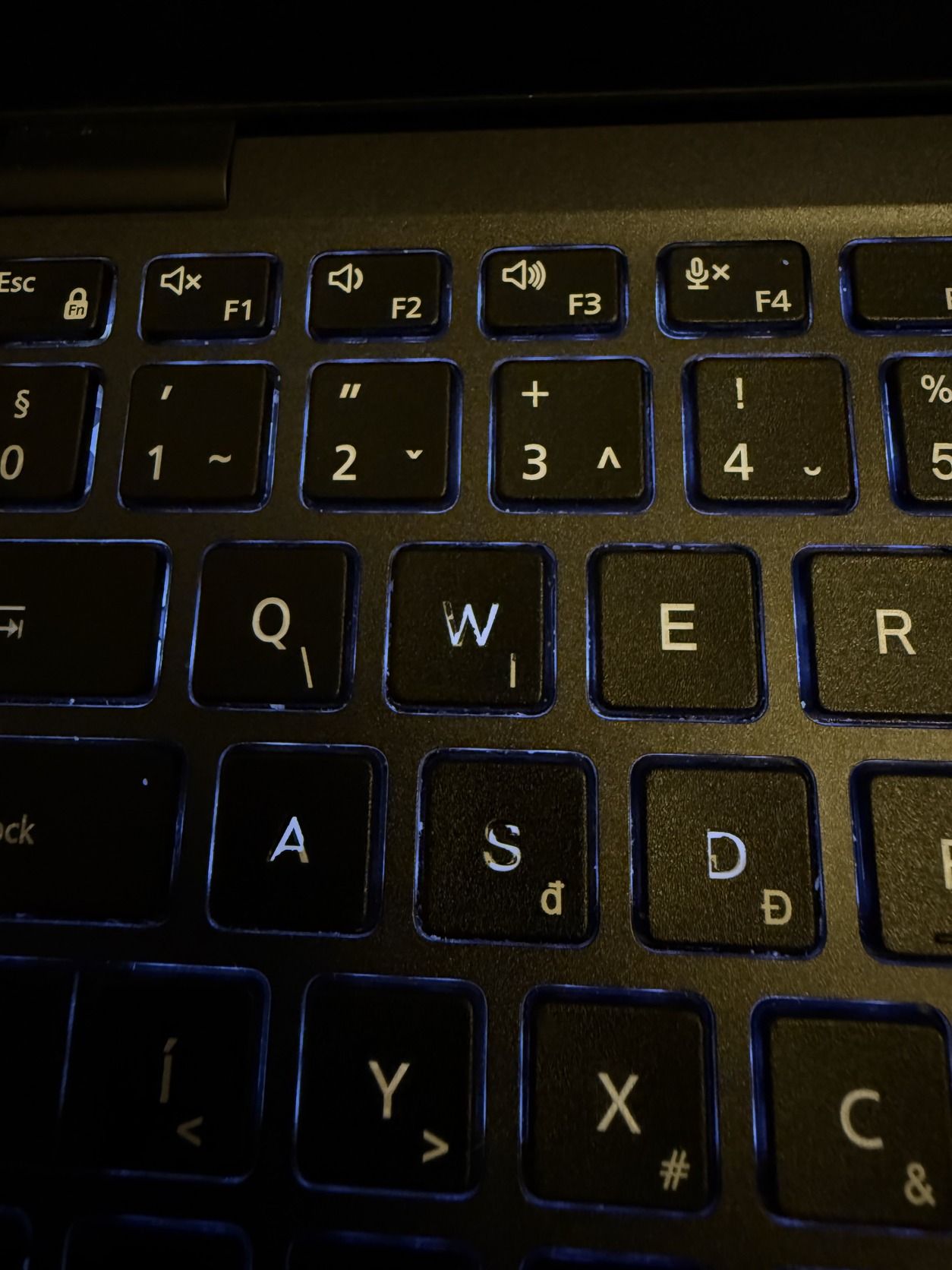 • A bekapcsológomb és a WASD billentyűk enyhén kopottak