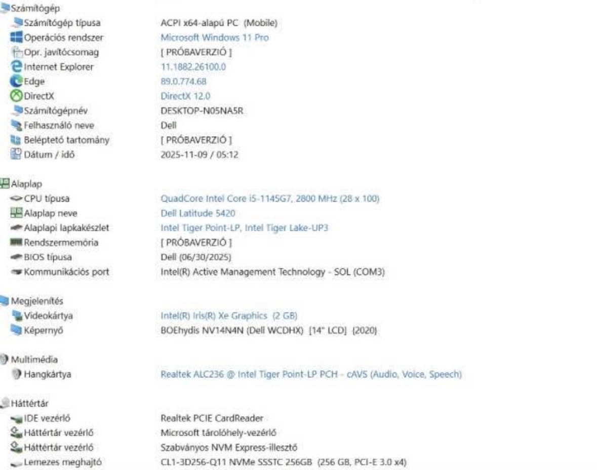 Operációs rendszer: Windows 11 Pro