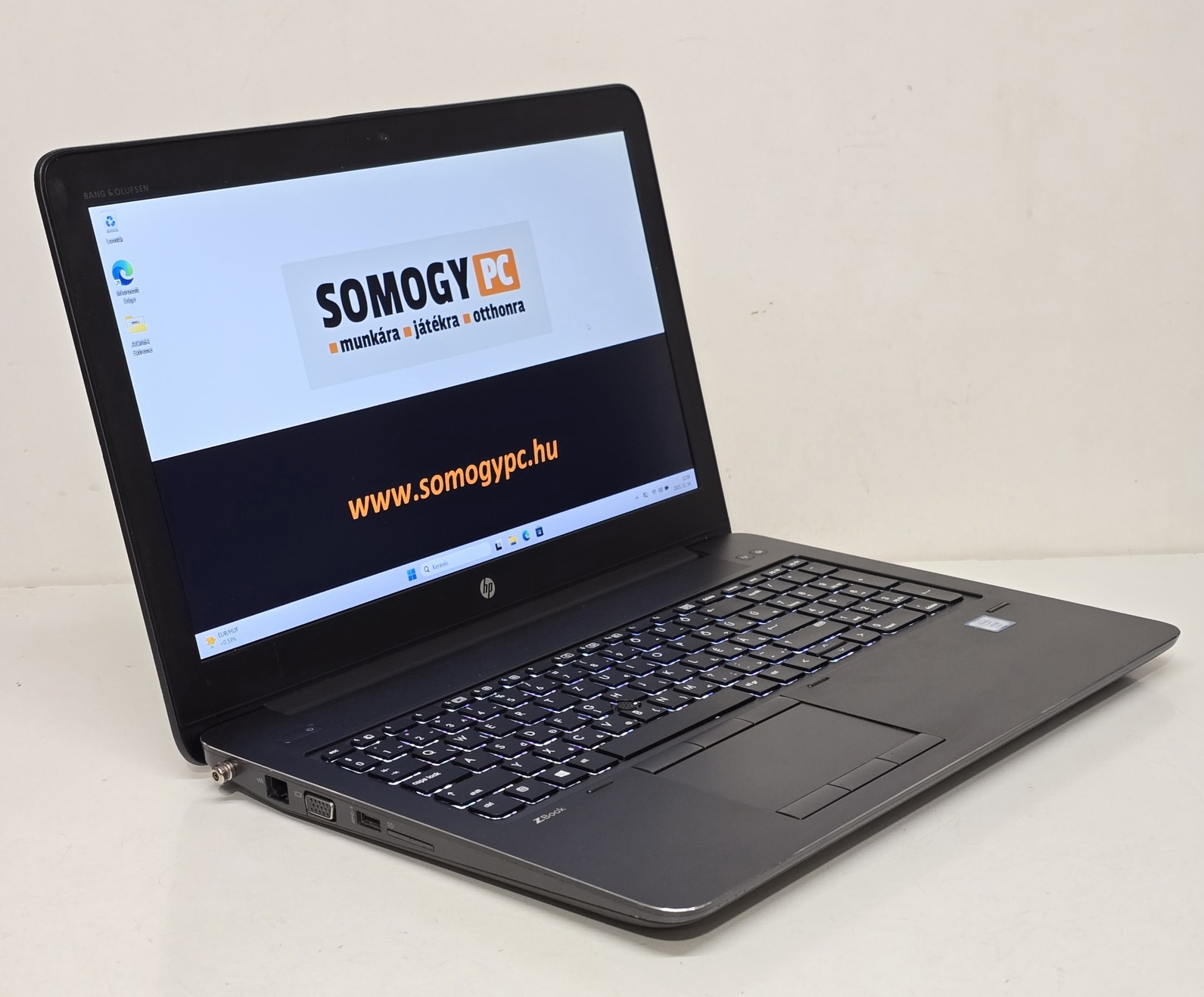 - Csatlakozók: 2× USB-A 3.0, 2× USB-C / Thunderbolt 3, 1× HDMI 1.4, 1x D-SUB/VGA, 1× RJ-45 LAN, 1× 3,5 mm jack (fejhallgató/mikrofon)