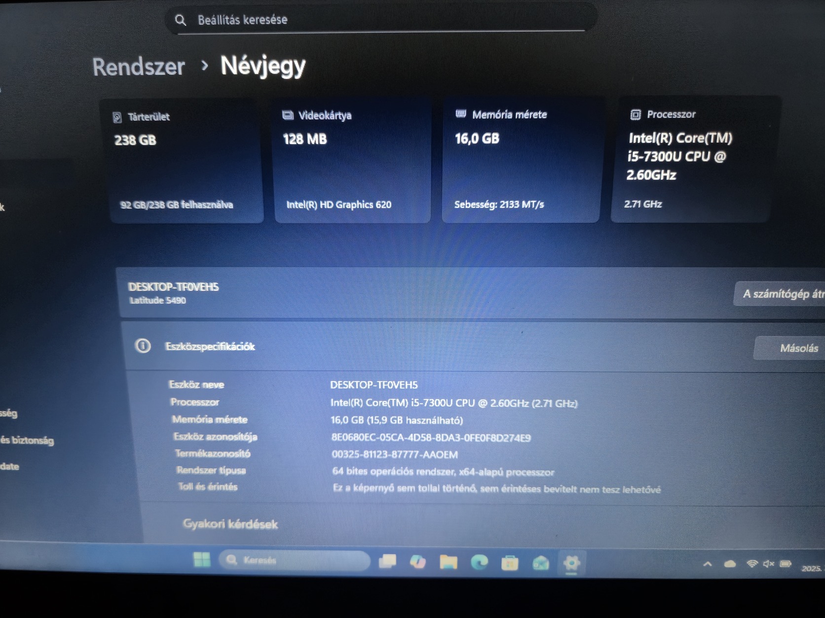 A gép kapott korábban memória fejlesztést 8gb-ról 16gb-re.